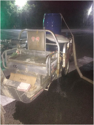 上周的一天晚上十點(diǎn)左右,我回家路上經(jīng)過雪峰公園,遠(yuǎn)遠(yuǎn)的看見雪峰公園東南角紅綠燈底下停了一輛裝滿桶罐的電動(dòng)三輪車。可能大家覺得車停在紅綠燈底下并沒有什么特別的,可是作為在稽查部工作的一名員工,對于消防栓的位置多數(shù)悉知,而三輪車上的停靠位置正好在消防栓邊,加之車主在路邊抽煙不時(shí)抬頭看看車,以上種種情況顯示疑似私取消防栓偷盜水。