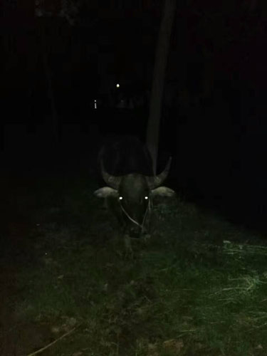 (圖1:洋河夜間查漏:漆黑夜里忙查漏,不眠水牛來(lái)作伴)