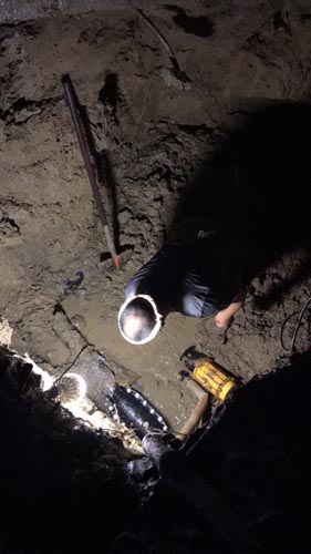 在武圩村, 110過(guò)路主管道遭暴雨破壞,由于漏水點(diǎn)在河里,也是無(wú)法使用挖掘機(jī)作業(yè),只能人工開(kāi)挖,由于該管道做了頂管施工,管埋較深,一鍬一鍬挖至深達(dá)2.5米處,終于,破損的管子露出了真面目。此時(shí)已過(guò)了晚飯時(shí)間,維修人員整個(gè)人都陷在泥水里,大雨剛過(guò),土質(zhì)疏松,坑邊不時(shí)有坍塌,突然一塊小石塊滾落,劃傷了額頭,二話不說(shuō),拿起擦汗的毛巾裹住傷口,繼續(xù)戰(zhàn)斗。人雖已筋疲力盡但一刻都不敢停歇,“那么多人等著吃水用水呢”,此時(shí),這就是維修人員心里唯一的念頭。根據(jù)管道漏損情況,緊急制定出搶修方案、調(diào)配材料,夜里十二點(diǎn)多,經(jīng)歷了饑熱交迫,蚊蟲叮咬,搶修任務(wù)圓滿完成。夜深人靜,更深露重,帶著搶修完成的欣慰,收拾起一身的疲乏,回家……
