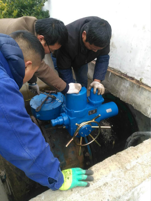 電裝到貨之后,機電設備部人員與制水部協商,確定更換時間,保證不影響供水。按照計劃,現場人員開始拆除舊的電裝,大家分工協作,拆電裝的人和拆線的人分開同時開工,很快就將原有的電裝拆除。接下來開始安裝新的電裝和接線,同樣大家還是分工協作,很快就將新的電裝安裝接線完成。緊接著,調試工作開始,大家開始相互配合,找出有問題的地方,繼續修改。僅用一天的時間就完成了三棵樹泵站的進水閥門安裝調試工作。進水閥正常工作,消除了安全隱患,保證了三棵樹泵站的正常運行,保證了南線的安全供水。