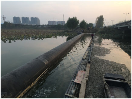 DN1400給水主管道工程施工難度對我們來說也是一次不小的考驗,經統計DN1400管道共穿越了古黃河、順堤河、清水河、民便河4條河道,穿越了洪澤湖路、青海湖路、陽澄湖路、徐淮路、通湖大道等17條道路,其中5次穿越省級公路。每一次穿越河道或道路施工都會遇到了諸多難以想象的困難,如過河施工,需考慮汛期、管道在水中的穩定性、河道景觀和水質的保護等;再如穿越道路施工,需考慮交通導流、夜間施工、文明措施、避讓其他管線等。我們一條河一條河的穿越、一條路一條路的穿越、一個施工方案一個施工方案的制定和執行、一個問題一個問題去解決……最終保證了DN1400管道的順利貫通。