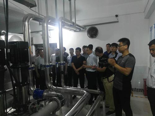 葉興成副局長從群眾滿意度、行業(yè)建設、二次供水建改造設等方面向來賓介紹了近幾年宿遷市自來水建設的情況。宿遷市供水行業(yè)群眾滿意度越來越高,行業(yè)建設水平不斷提升,2017年11月,宿遷銀控自來水有限公司代表江蘇省接受全國城鎮(zhèn)供水規(guī)范化管理考核位居前列,二次供水建設管理成為全省示范城市,宿遷銀控自來水有限公司做出了很大的貢獻。