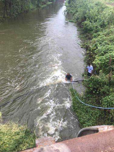 2018年6月28日上午9時左右,龍河區域供水服務中心營業廳接到夏圩村客戶來電反映整個村中無自來水使用。隨后,服務受理員通知維修員趕赴現場排查原因。維修員經過近1個小時地毯式的排查后,終于在陸圩橋下河內發現疑似漏點。