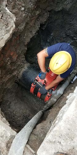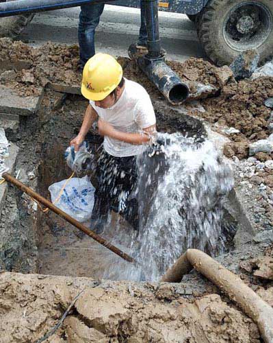 稽查加大巡查力度,對(duì)轄區(qū)所有消防栓制定巡查計(jì)劃,對(duì)于有拆遷、道路施工、項(xiàng)目建設(shè)等增加巡查次數(shù)。6月19日下午,洋河鎮(zhèn)洋曹路旁一企業(yè)施工時(shí)將我司一道DN400主管道挖壞,漏損十分嚴(yán)重,下游一整個(gè)屠園鄉(xiāng)面臨停水,情況十分緊急。部門相關(guān)人員立即就位,一路停水、一路備料、一路現(xiàn)場(chǎng)指導(dǎo)開挖,同時(shí)通知屠園鄉(xiāng)維修員、抄收員、洋河、宿遷大廳值班員停水事宜,現(xiàn)場(chǎng)分工明確,忙而不亂,最終在不到3小時(shí)完成搶修并恢復(fù)供水。