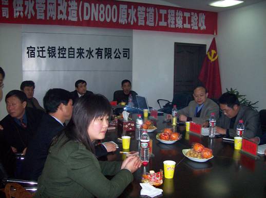 工程竣工后,經過一段時間的運行,已具備驗收條件,2008年3月26日,由宿遷市發改委蔣衛主任主持,召集宿遷市財政局、市建設局、市水務局等相關單位組成評委會對該工程進行竣工驗收。工程建設單位、施工單位、設計單位與監理單位分別到會并對該工程的建設情況進行了報告。宿遷銀控自來水有限公司夏承光總經理陪同與會評委對DN800原水管道進行了實地考察。在綜合考評后,評委們對該工程的建設情況和運行效果給予充分肯定,并一致認為,該工程滿足設計要求,質量合格,符合施工建設規范,具備一整套國債項目操作規范手續,符合驗收標準。