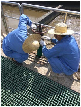 (圖:機(jī)電部在生化池維修啟閉閥)