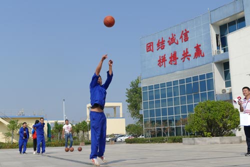 上午9:00,“接力投籃”比賽正式鳴哨,拉開了2018年度迎國慶活動的序幕。這邊組委會人員核對報名人員,按組有序排列,講規則,做示范;那邊大家都已摩拳擦掌、躍躍欲試了。每支隊伍3人(二男一女),其中一名男隊員和一名女隊員背對背運送籃球至指定地點(不得用手觸碰到球,中途掉落需重新從原點再開始),由第三名隊員站在指定距離處投籃,投進一球記一分,不進球不得分,5分鐘時間內,投進球數計為該組成績。共16個隊伍參與角逐。第一組隊員來自財務部,財務部經理許應濤親自掛帥,首開進球,博得全場喝彩,接下來得失參半,累計成績4分。緊接著,第二組水表檢定中心隊,第三組污水隊……,比賽剛開始,有的女同事還覺得難為情,賽程過半,氣氛也是越來越激烈。備賽隊員悄悄地在旁吸取教訓、學習經驗,在心里暗暗較勁,準備在場上大展拳腳;圍觀人員有人鼓勵,有人調侃,更有 “唯恐天下不亂”者在場邊干擾投籃隊員,現場時不時爆發哄堂大笑,十分熱鬧。最終工程管理部丁國棟組獲得第一名、調度中心邱石磊組、二次供水袁頡組并列第二, 區域供水張用雷組、耿車污水廠何露露組、人力資源張琳琳組獲得季軍。