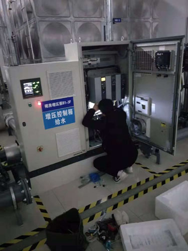 其次,宿遷恒力酒店的一套控制系統因管路漏水,導致三臺CUE均有不同程度的損壞,導致系統崩潰無法使用。同時因相關管理人員對產品不了解,只得安排人員手動工頻運行,人員24小時輪流值守,設備啟動三分鐘停兩分鐘,周而復始,這種折磨可想而知。經過輾轉不得不求助于我們,經過我方技術人員的指導幫助,解除了手動控制的難題。實現了應急恒壓供水運行。同時我們把服務功能和產品服務詳細介紹了一遍,并根據對方實際提出了許多可能的問題原因,經過一番溝通,對方對我們的服務優勢非常肯定,管理層領導立馬要求采購部門從我方訂購一臺CUE。