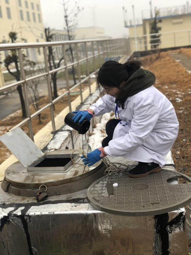 (圖2:節(jié)日期間,水質(zhì)檢測(cè)人員冒著嚴(yán)寒加密取水化驗(yàn))