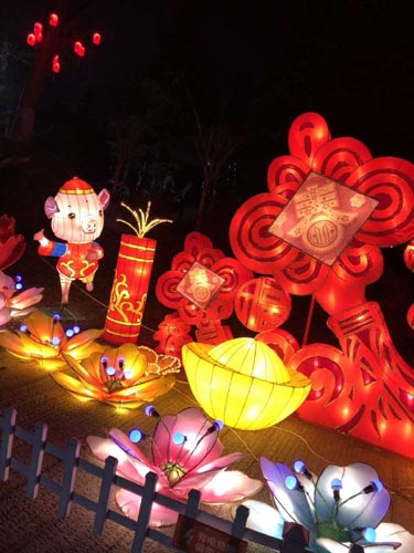 隨后我們隨著人潮來到了花燈區,這里的花燈燈光搖曳,花團緊簇,金豬鬧新春里突顯了豬年與春天的完美結合,歡樂滿宿遷則展示了優美的宿遷民俗文化,西楚風采頌詮釋了現代宿遷人勇于拼搏的時代精神,所到之處,五彩繽紛,美不勝收。我們家的小家伙們最喜歡的當然是童趣憶光年這個燈區啦,他們最喜歡電視上才能看到的卡通形象了,花燈呈現出色彩炫麗、童話般魔幻的色彩,吸引了眾多小朋友觀看,不少小朋友的家長和游客們拿出相機或手機,按動快門,定格下這美麗的瞬間。我的孩子們完全融入在了虛擬的空間里,流連忘返,久久不愿離去。