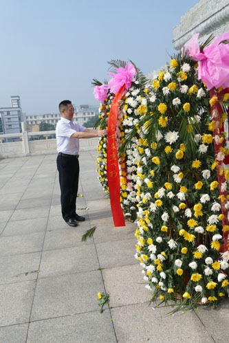 在“宿北大戰(zhàn)”紀(jì)念碑前,陳毅元帥題寫的遒勁的“宿北大戰(zhàn)馬陵山革命烈士紀(jì)念塔”14個(gè)大字,金光閃爍。黨委組織委員杜愛軍同志帶領(lǐng)全體黨員重溫入黨誓詞。大家舉起右拳,面向黨旗莊嚴(yán)宣誓,對(duì)黨忠誠、永不叛黨。通過重溫入黨誓詞,讓全體黨員喚起了入黨時(shí)的鄭重承諾,也讓全體黨員的思想得到了進(jìn)一步升華。黨委書記曾真同志代表全體黨員進(jìn)行表態(tài),要時(shí)刻保持黨的優(yōu)良傳統(tǒng)和作風(fēng),勇于擔(dān)當(dāng)、積極作為,展現(xiàn)新時(shí)代黨員形象,為宿遷供水事業(yè)的發(fā)展和生態(tài)文明建設(shè)做出更大的貢獻(xiàn)。全體黨員向“宿北大戰(zhàn)”紀(jì)念碑進(jìn)獻(xiàn)花藍(lán),并向?yàn)橹袊夥攀聵I(yè)獻(xiàn)出生命的戰(zhàn)斗英烈三鞠躬。