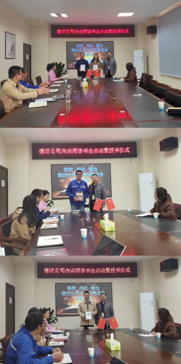 啟動儀式共分五大項:一、吳總宣讀 《宿遷公司內訓師讀書會活動實施方案》;二、陳總為內訓師們頒發學習書籍和讀書筆記本;三、內訓師代表發言;四、陳總作重要講話和指導;五、宣布啟動儀式結束。