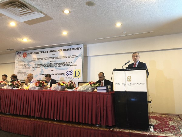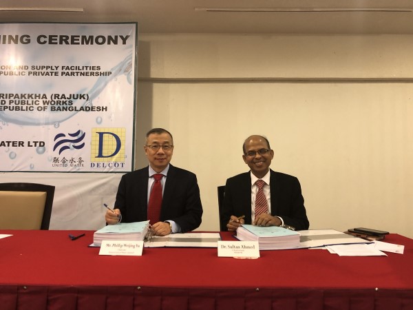 2019年11月11日,孟加拉國(guó)第一個(gè)供水PPP項(xiàng)目—孟加拉國(guó)首都達(dá)卡市Purbachal新城供水及配水設(shè)施開發(fā)PPP項(xiàng)目簽約儀式在達(dá)卡市隆重舉行。該項(xiàng)目由聯(lián)合水務(wù)集團(tuán)與孟加拉Delcot集團(tuán)聯(lián)合投資建設(shè)并運(yùn)營(yíng),設(shè)計(jì)供水能力為34萬噸/日,將為Purbachal新城24平方公里內(nèi)的160萬居民提供優(yōu)質(zhì)供水服務(wù),特許經(jīng)營(yíng)期限為15年。